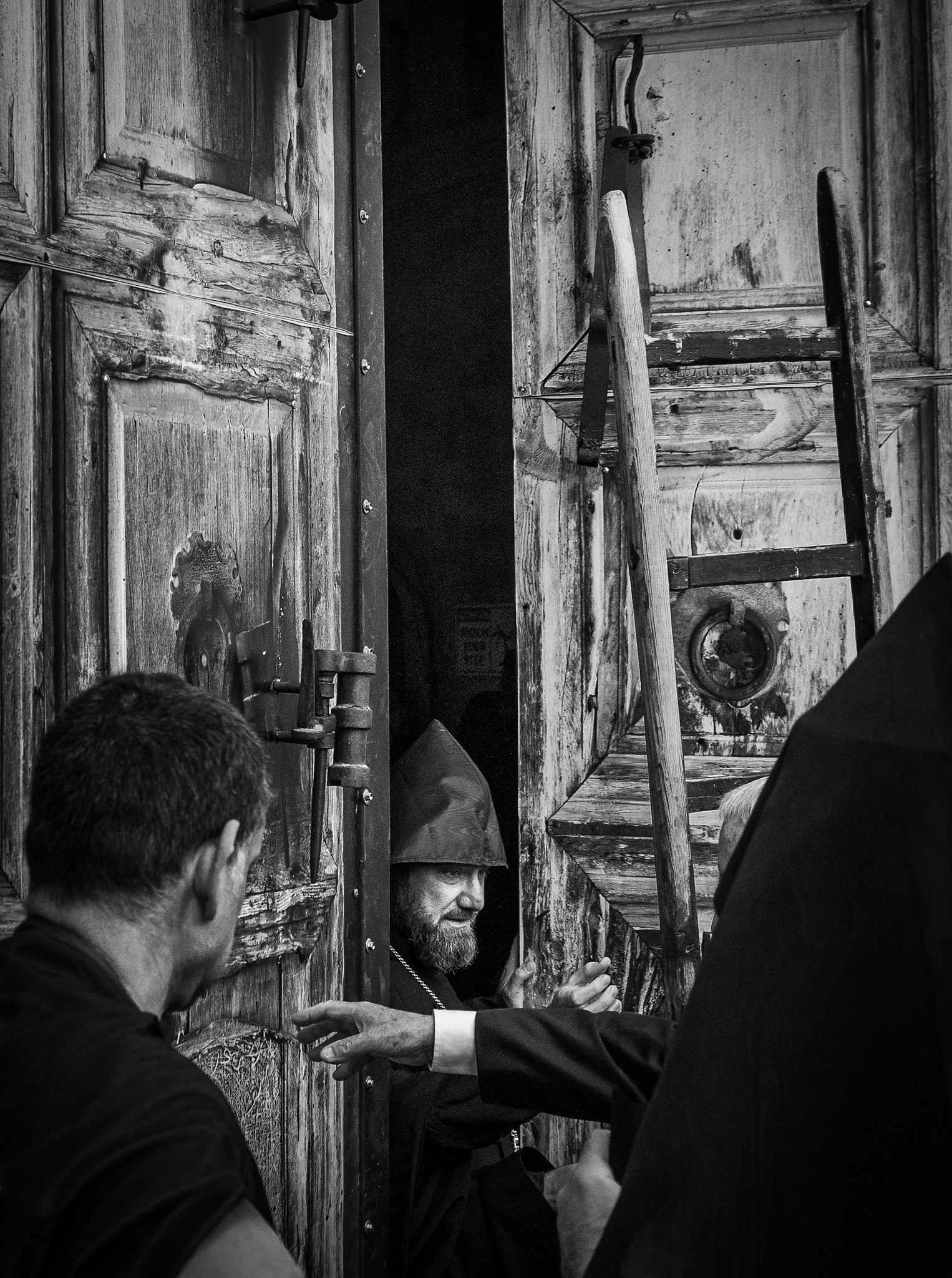 According to a centuries-old tradition, the Armenian Patriarch brings the key to the church, carrying it in a ceremonial procession through the Old City as has been done for generations, but does not open the door himself. The key is handed to a representative of the Waqf — the Islamic authority responsible for the site — who unlocks the gates, maintaining a neutral role between Christian communities.